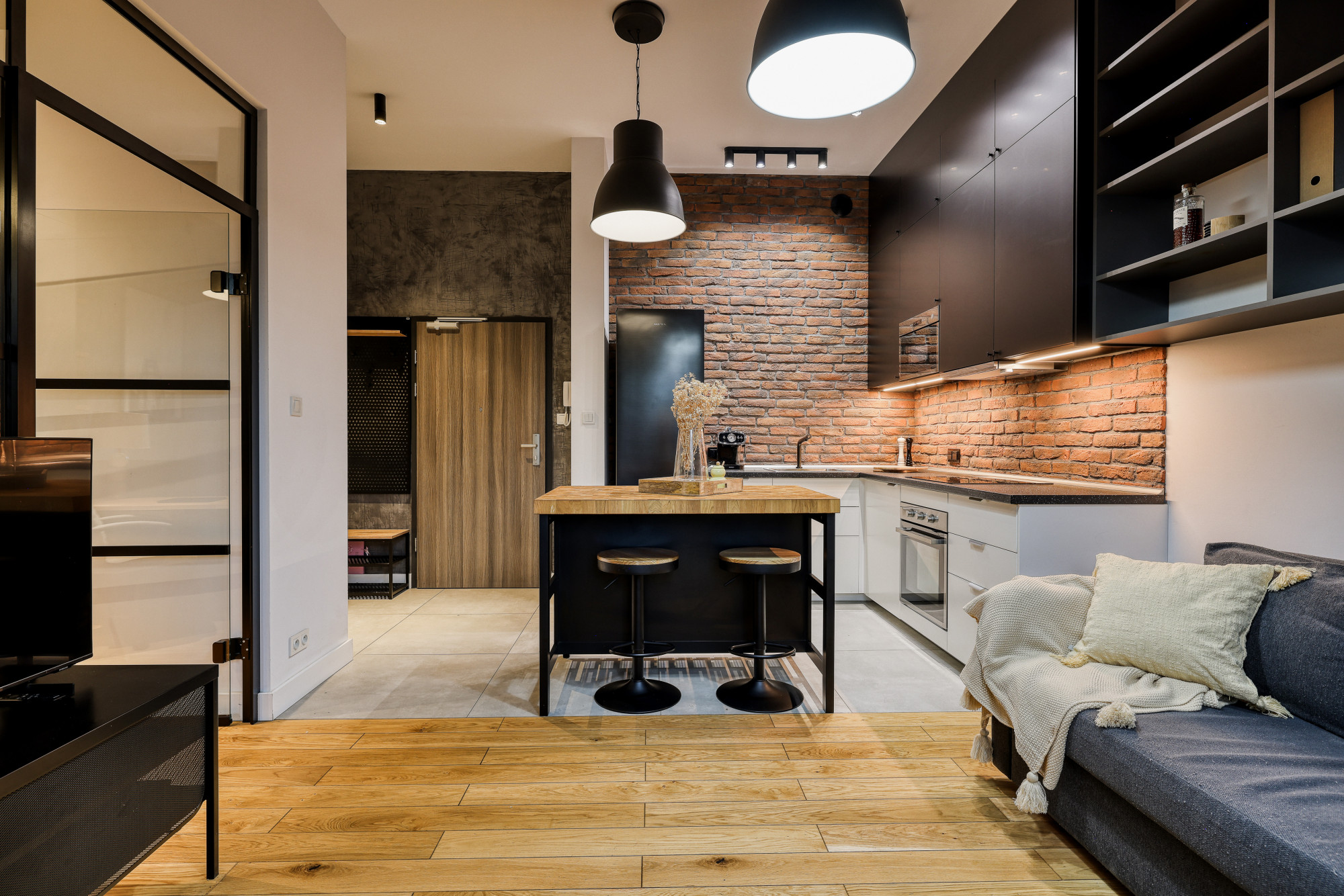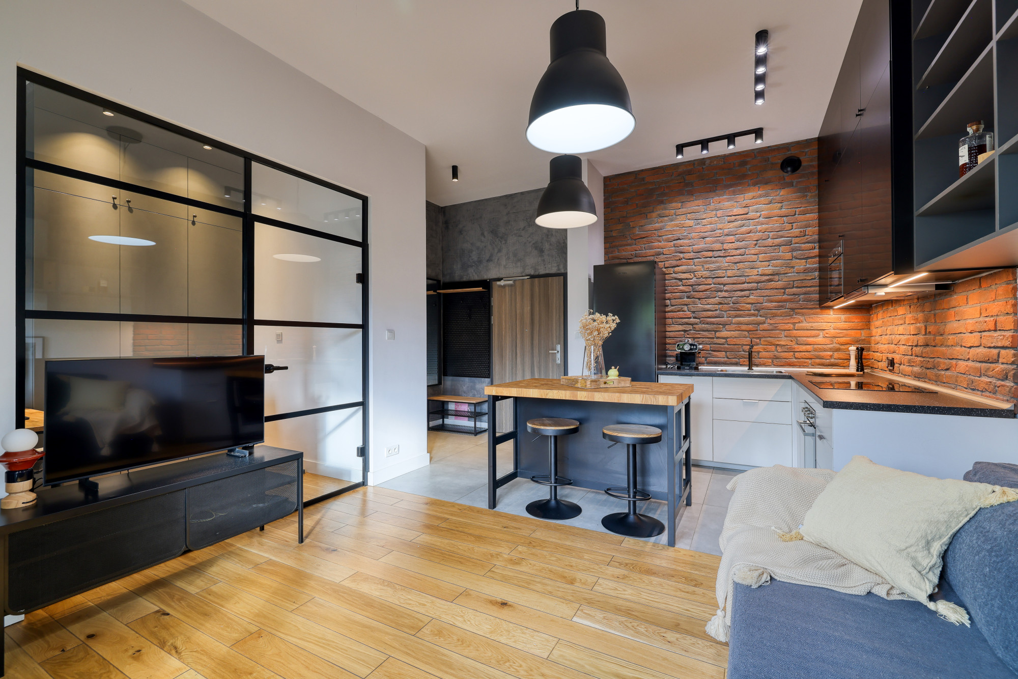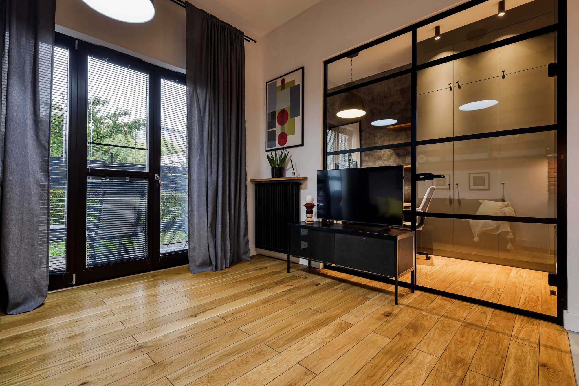 Zastosowano w nim materiały najwyższej jakości - naturalne drewniane podłogi, eleganckie wykończenia oraz meble i zabudowy wykonane na zamówienie.